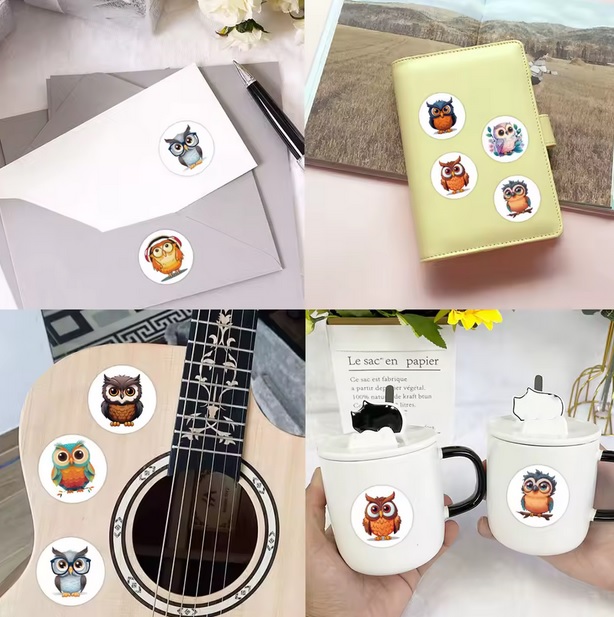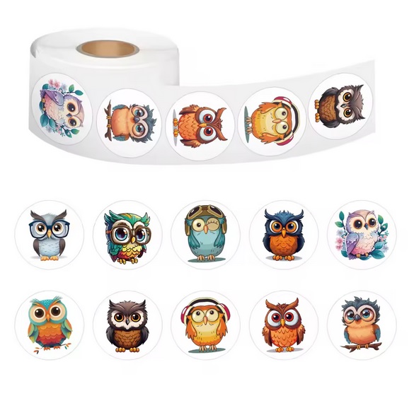 Krásné barevné sovičky v mnoha činnostech (zpívající, hrající, koukající, spící atd). Udělejte někomu radost a nalepte mu sovičku na notebook, telefon, peněženku, dárek apod. Tato samolepka udělá radost velkým i malým. Hezký dárek.