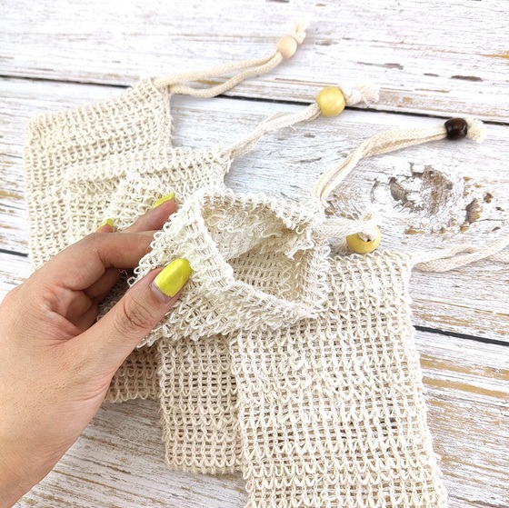 Ručně háčkovaný obal na tuhá mýdla vyrobený ze 100% lnu. Tuhé mýdlo jednoduše vložíte do sáčku a umyjete se jako obvykle. Sáček také funguje jako žínka, čímž lehce „peelinguje“ pokožku a skvěle pění. Jednoduše a šetrně.