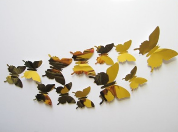 Nechte motýlky létat na zdi. Roj se skládá z 12 jednotlivých motýlů ve 3 různých velikostech, velké 2 ks, střední 2 ks, malé 8 ks. Instalace je snadná. Křídla trochu ohnete, přilepíte oboustrané lepítko na tělíčko motýlka a nalepíte na stěnu nebo povrch Vámi zvolený. Individuálně a v závislosti na vašem přání. Nádherného efektu dosáhnete i smícháním několika barev.