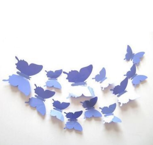 12 ks 3D motýlků na zeď různých velikostí v jednom balení.
