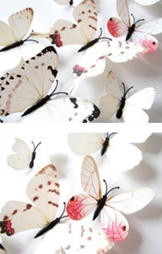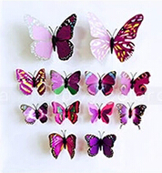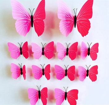 12 barevných 3D motýlků na zeď různých velikostí v jednom balení.