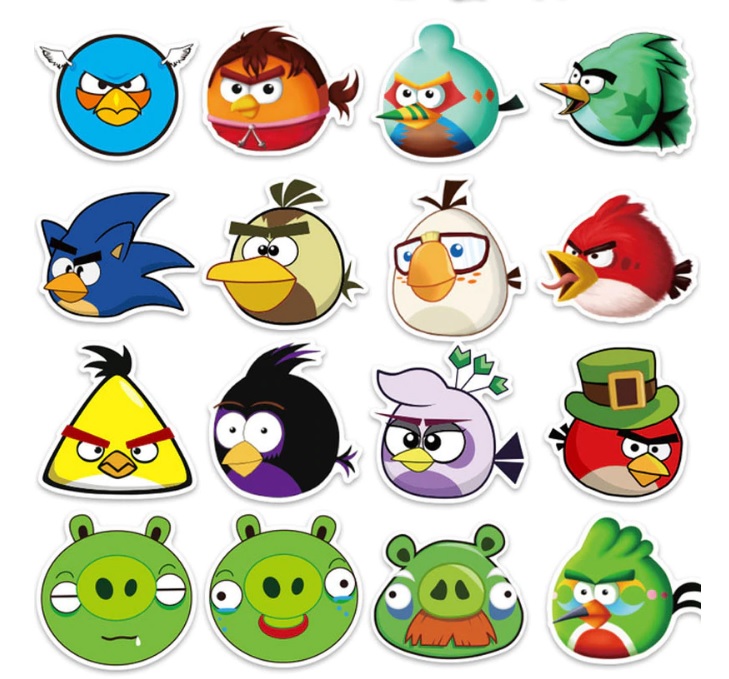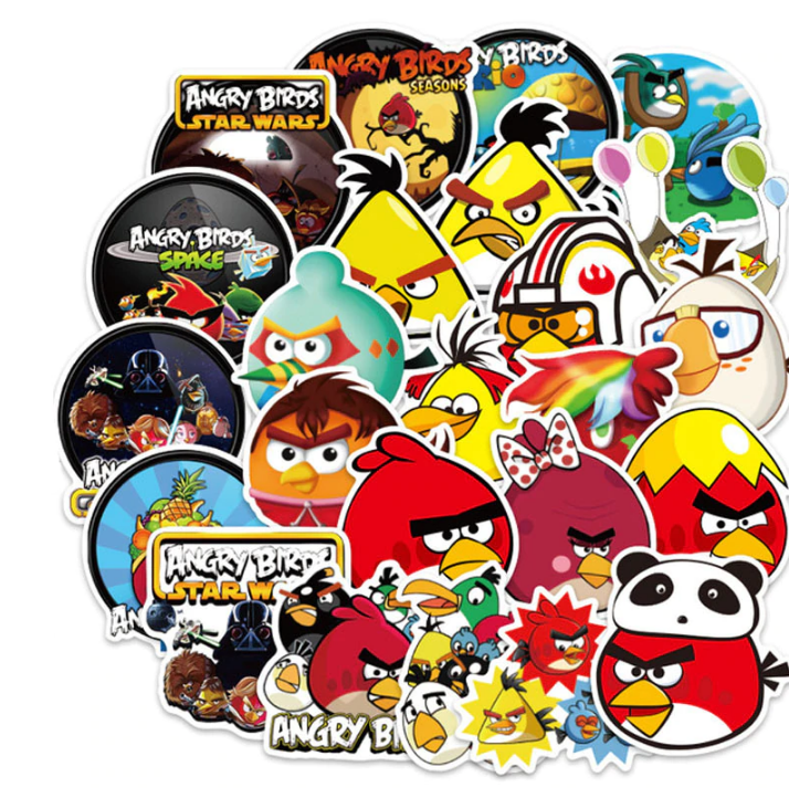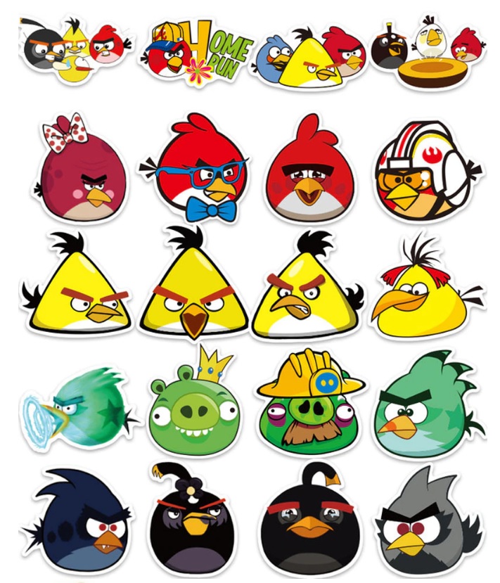 Srandovní samolepky pro děti Angry Birds (rozzlobení ptáčci). Tyto samolepky udělají radost každému dítěti. Samolepky jsou velice kvalitní, voděodolné a vhodné na všechny možné povrchy. Samolepky jsou v různém provedení a stylu. Prostě si polepte co chcete. Skateboard, snowboard, kolo, helmu, kufr, notebook, auto atd. možnosti jsou neomezené! Samolepky dodáváme v balení po 50 kusech.