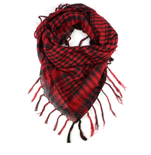 Populární arabský šátek keffieh (z arabštiny küffyah), nazývaný též yasmagh (z turečtiny), určitě znáte pod českým názvem palestina nebo i arafat. Odkud se vzal tento praktický kus oděvu a jeho pojmenování ? Původ tohoto textilního doplňku můžeme najít už u rybářů a zemědělců starověké Mezopotámie. Původně se jednalo o tradiční pokrývku hlavy nošenou muži ve vyprahlých a suchých končinách. Tento šátek uvázaný různými styly odedávná poskytoval užitečnou ochranu hlavy. Ve dne před sluncem, v noci pak před chladem. Rovněž ochrana před prachem a pískem neseným větrem je ceněnou vlastností tohoto šátku.