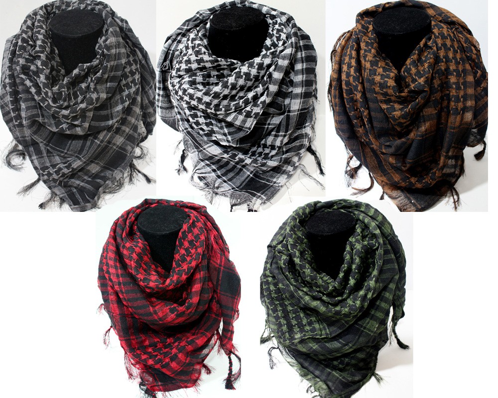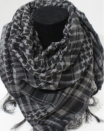 Populární arabský šátek keffieh (z arabštiny küffyah), nazývaný též yasmagh (z turečtiny), určitě znáte pod českým názvem palestina nebo i arafat. Odkud se vzal tento praktický kus oděvu a jeho pojmenování ? Původ tohoto textilního doplňku můžeme najít už u rybářů a zemědělců starověké Mezopotámie. Původně se jednalo o tradiční pokrývku hlavy nošenou muži ve vyprahlých a suchých končinách. Tento šátek uvázaný různými styly odedávná poskytoval užitečnou ochranu hlavy. Ve dne před sluncem, v noci pak před chladem. Rovněž ochrana před prachem a pískem neseným větrem je ceněnou vlastností tohoto šátku.