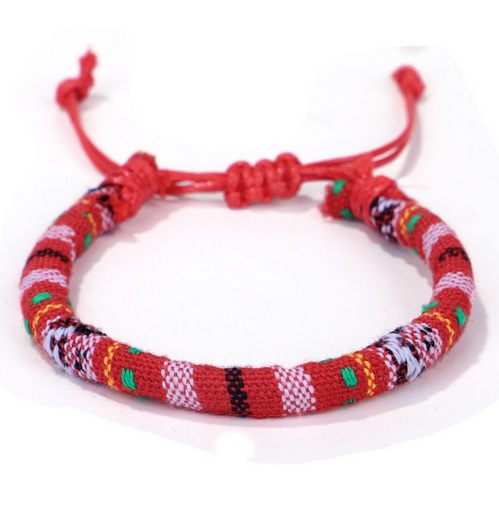 Bavlněný tibetský náramek pro štěstí a harmonii - červený