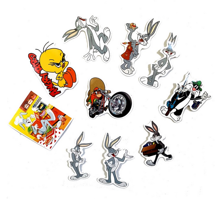 Sada 50 ks skvělých samolepek Looney Tunes. Jedná se o americkou animovanou sérii komedií z produkce Warner Bros. Bugs Bunny, Sylvester, Tweety, Coyote, a mnoho dalších zábavných postaviček. Tyto samolepky potěší každého, kdo má rád tyto animované divochy. Samolepky jsou velice kvalitní a voděodolné.
