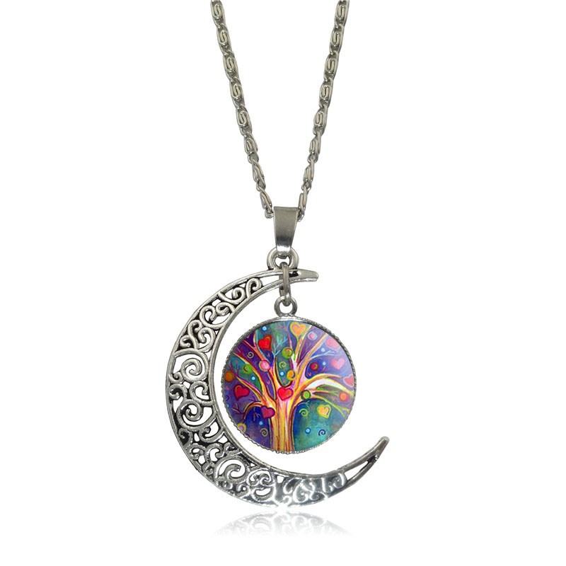Přívěsek life tree/strom života je originální a moderní přívěsek, který rozzáří hruď nejedné ženy. Hodí se ke sportovnějšímu, ale i elegantnějšímu stylu. Materiál je stříbrené barvy, přívěsek je potažen vrstvou čirého skla a zasazen do měsíce. Strom je krásně vybarvený a přívěsek Vás zaujme krásnými barvami. Zapínání karabinka.
