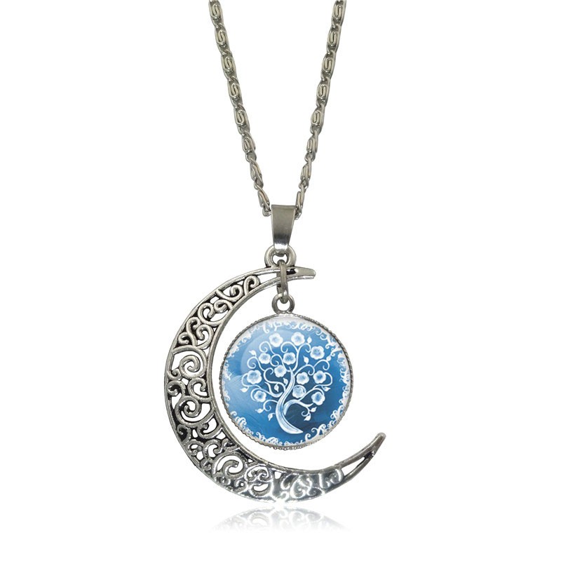 Přívěsek life tree/strom života je originální a moderní přívěsek, který rozzáří hruď nejedné ženy. Hodí se ke sportovnějšímu, ale i elegantnějšímu stylu. Materiál je stříbrené barvy, přívěsek je potažen vrstvou čirého skla a zasazen do měsíce. Strom je krásně vybarvený a přívěsek Vás zaujme krásnými barvami. Zapínání karabinka.