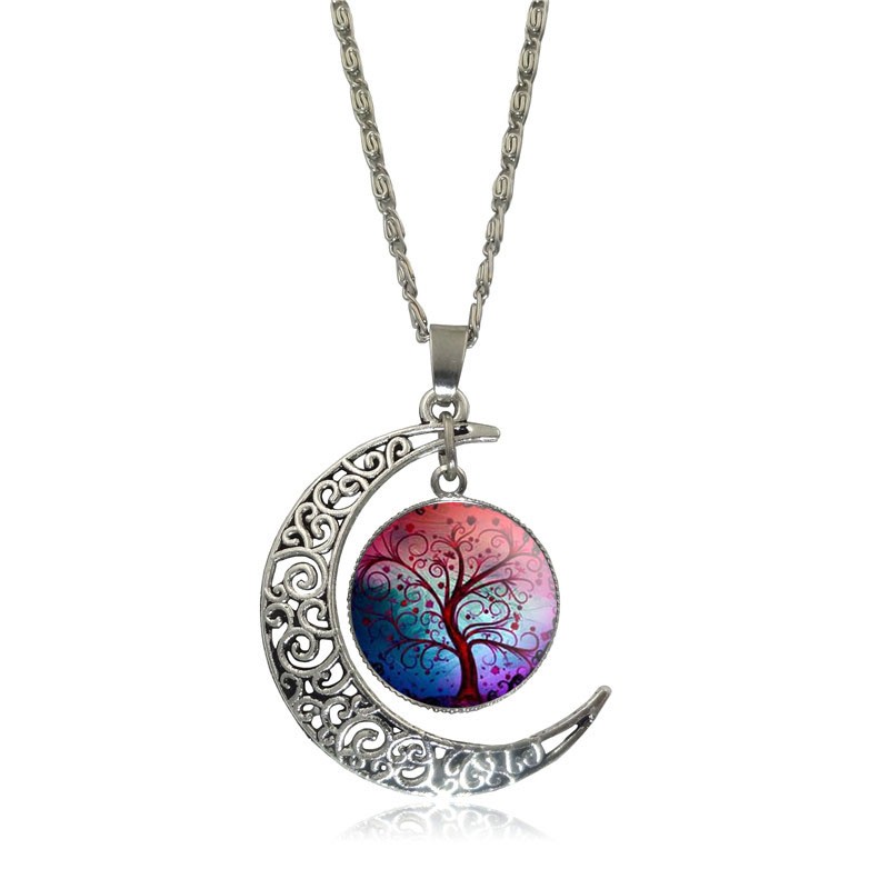 Přívěsek life tree/strom života je originální a moderní přívěsek, který rozzáří hruď nejedné ženy. Hodí se ke sportovnějšímu, ale i elegantnějšímu stylu. Materiál je stříbrené barvy, přívěsek je potažen vrstvou čirého skla a zasazen do měsíce. Strom je krásně vybarvený a přívěsek Vás zaujme krásnými barvami. Zapínání karabinka.
