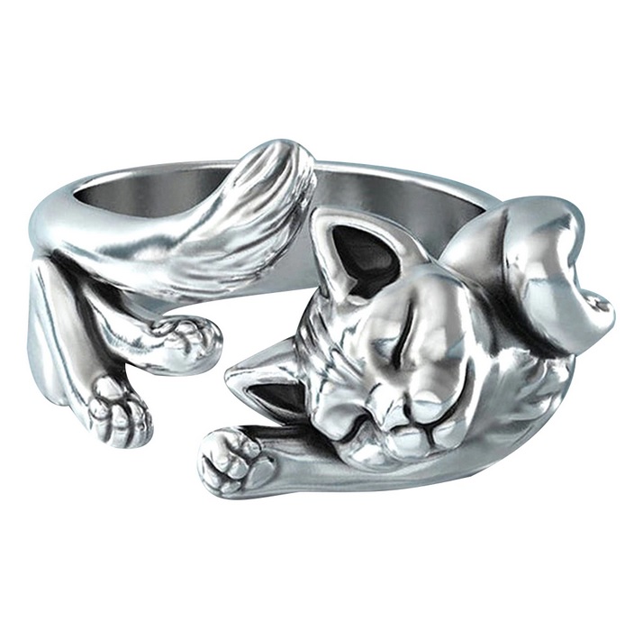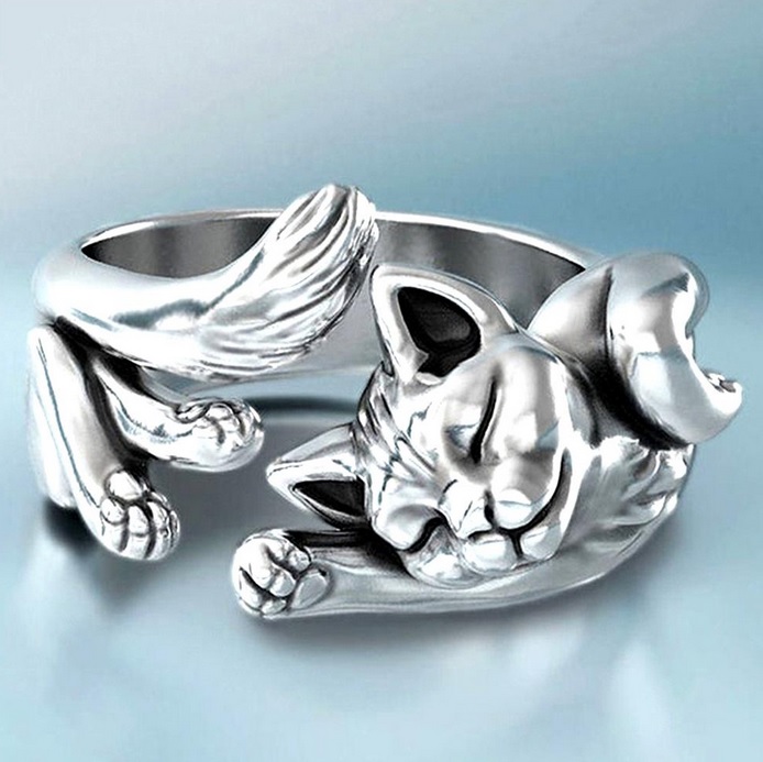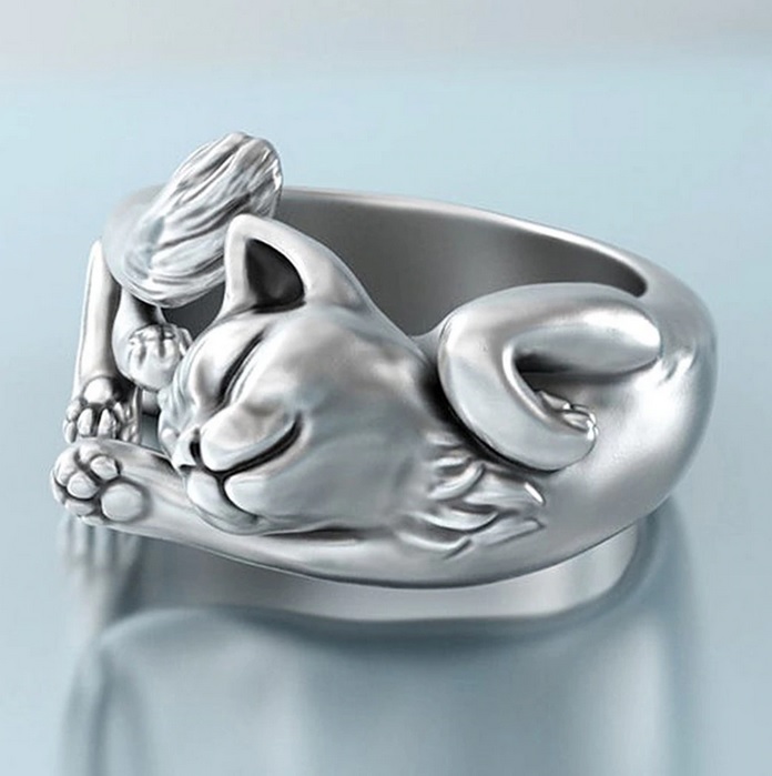 Hezký prstýnek ve tvaru roztomilé kočičky. Vzhled prstenu je zajímavý svým provedením a zpracováním. Krásně vynikne a velmi sluší. Pro všechny milovníky těchto zvířátek. Povrchová úprava je stříbro.