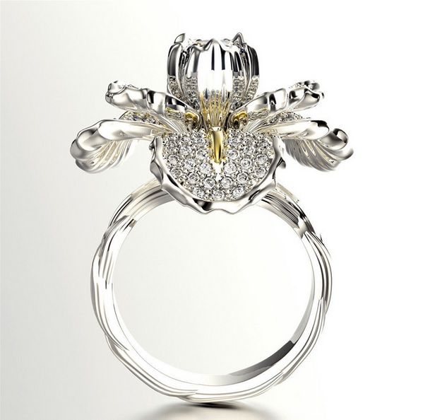 Krásný prstýnek kytička bohatě zdobený zirkony