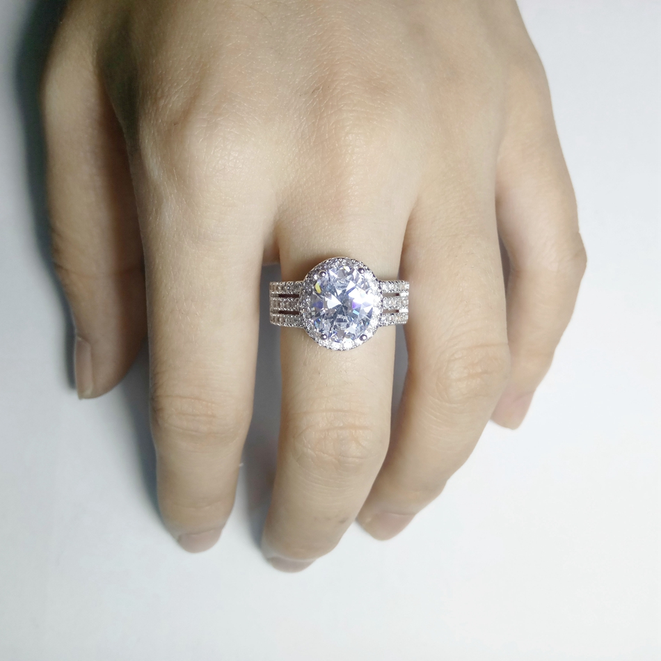 Půvabný dámský prstýnek zdobený čirými zirkony. Prstýnek je z vrchu dekorován mnoha kamínky. Zirkon je průhledný až průsvitný minerál krásného lesku, jako takový je oblíbený na celém světě a hlavně ve šperkařství. Vzhled prstenu je zajímavý svým provedením. Povrchová úprava je stříbro.