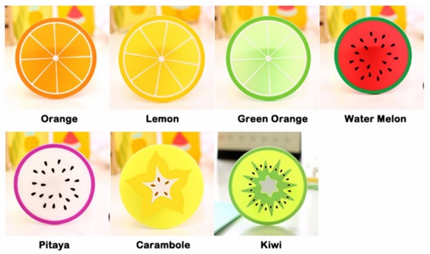 Tyto krásné podtácky, které zachycují průřez ovocem se stanou skvělým doplňkem nejen Vaší kuchyně. Podtácky jsou v atraktivním designu tropického ovoce. Jsou vyrobeny z nezávadného, omyvatelného silikonu, který má z jedné strany přilnavou vrstvu, aby nedocházelo k poyhubu na stole. Už nebudete muset řešit kolečka z orosených sklenic, či poškrábaný stůl. Každý si oblíbí svůj podtácek. Tato sada je nejen skvělým dárkem, ale i ideálním doplňkem Vašeho domova. Sada obsahuje 7 druhů tropického ovoce a to :