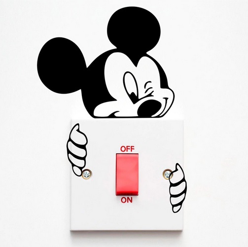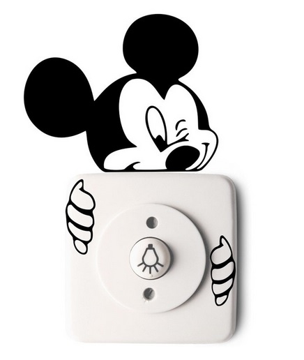 Krásná dětská samolepka Wald Disney nad vypínač, která rozveselí každý dětský pokoj. Mickey Mouse, někdy myšák Mickey s Myškou jsou známé kreslené postavička z dílny Walta Disneye. Vyrobeno z kvalitního a nezávadného PVC materiálu. Aplikace je velmi jednoduchá. Nechte rozsvítit a zhasínat tyto milé kreslené postavičky.