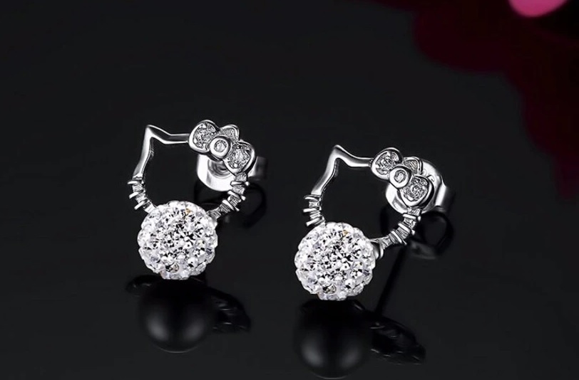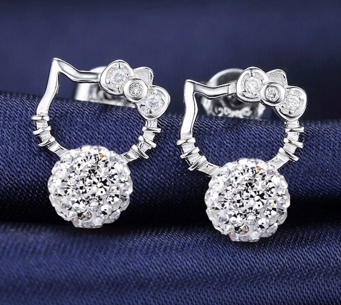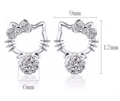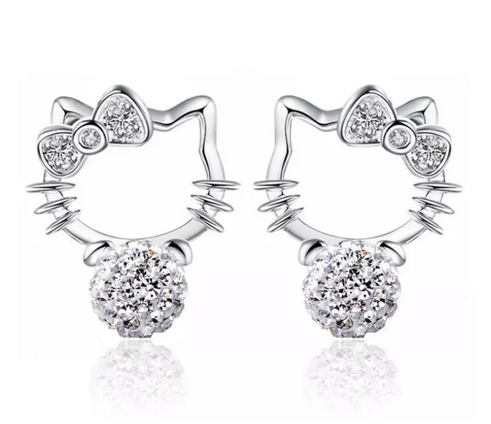 Krásné stříbrné naušničky Hello Kitty vykládané zirkony. Naušnice jsou vyrobeny z kvalitního materiálu ve tvaru populární hlavičky Hello Kitty.