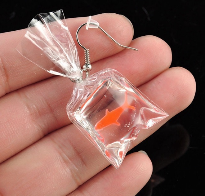 Hezké náušnice ve tvaru rybiček v pytlíku. Netradiční provedení dává těmto náušnicím opravdu působivý a zajímavý vzhled. Náušnice na ples, večírky, ale i na běžné nošení. Hezké zpracování, které zaujme na první pohled.