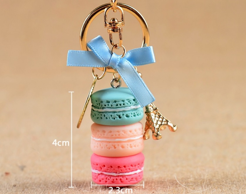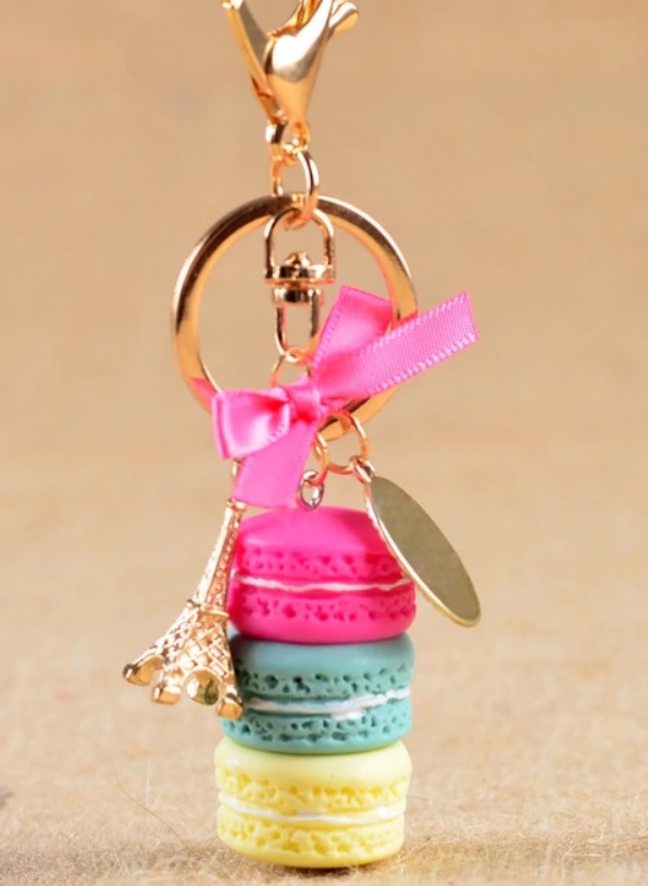 Velmi hezký přívěsek na klíče, sladké makronky doplněné zlatou Eiffelovkou. Moderní a stylový přívěsek na kabelku, klíče, batoh apod. Prostě připněte kamkoliv budete chtít. Makronky je drobný sladký dezert z Francie, který si získal celosvětovou oblibu.