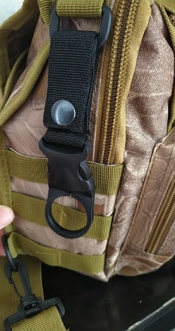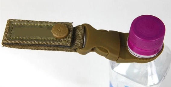 Jednoduchý a stylový závěsný držák na láhev a to nejen na opasek. Ideální pomocník šetřící místo ve Vašem batohu a láhev máte vždy při ruce. Čelisti držáku nacvaknete na hrdlo PET láhve a pomocí cvočku a suchého zipu ji můžete zavěsit na batoh, opasek, kalhoty apod. Spojení je velmi pevné a nemusíte se tak bát, že příjdete o Vaši láhev.