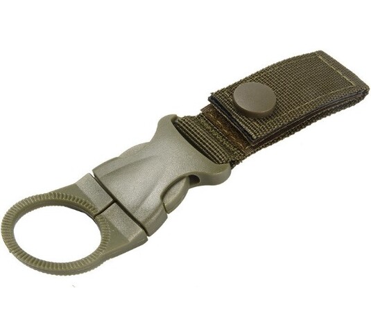 Jednoduchý a stylový závěsný držák na láhev a to nejen na opasek. Ideální pomocník šetřící místo ve Vašem batohu a láhev máte vždy při ruce. Čelisti držáku nacvaknete na hrdlo PET láhve a pomocí cvočku a suchého zipu ji můžete zavěsit na batoh, opasek, kalhoty apod. Spojení je velmi pevné a nemusíte se tak bát, že příjdete o Vaši láhev.