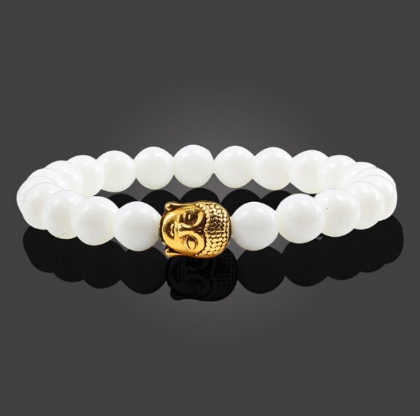 Korálky z kamene, stylový vzhled: to je buddha náramek - bílý
