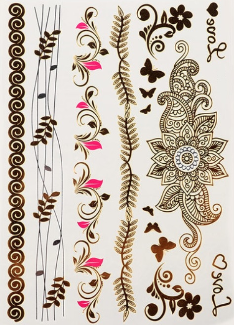 Spousta z nás si touží vyzkoušet nějaké tetování, ale problém je co sním, když už ho nechceme… Ideálním řešením je tedy dočasné tetování. Nabízíme Vám tohle zlatostříbrné tetování, se kterým budete vypadat skvěle. Tetování je vhodné na párty, večírky a pro jakoukoliv příležitost. Pokaždé když chcete být vyjímeční a odlišní od ostatních. Tohle velmi kvalitní a hezké tetování má velmi snadnou aplikaci a je naprosto šetrné k Vaší pokožce.