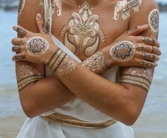 Spousta z nás si touží vyzkoušet nějaké tetování, ale problém je co sním, když už ho nechceme… Ideálním řešením je tedy dočasné tetování. Nabízíme Vám tohle zlatostříbrné tetování, se kterým budete vypadat skvěle. Tetování je vhodné na párty, večírky a pro jakoukoliv příležitost. Pokaždé když chcete být vyjímeční a odlišní od ostatních.