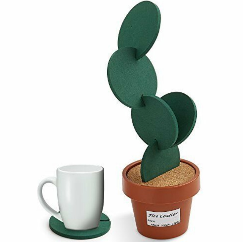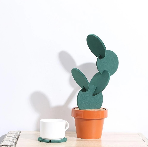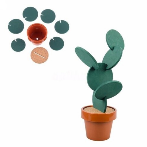 Velmi hezký a stylový kaktus, který se dá rozložit hned na několik podtácků jednoduše a rychle. Tento kaktus se stane ozdobou a skvělým doplňkem Vaší kuchyně, jídelny nebo obývacího pokoje. Podtácky jsou vyrobeny z nezávadného omyvatelného materiálu, který má přilnavou vrstvu, aby nedocházelo k poyhubu na stole. Už nebudete muset řešit kolečka z kávy, čaje či jakéhokoliv nápoje. Jednoduchý a moderní designový doplněk.