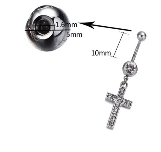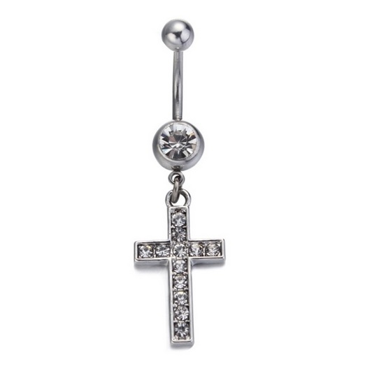 Piercing do pupku, křížek, který je vykládaný třpytivými zirkony. Piercing je vyrobený z nerezové oceli. Buďte IN s tímto hezkým třpytivým doplňkem, který rozzáří Vaše bříško.