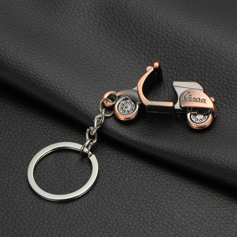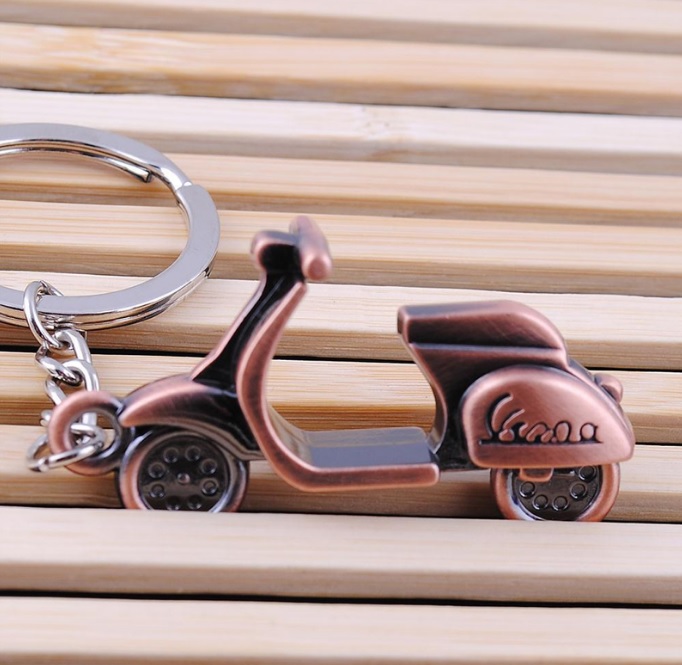 Oboustranný přívěsek na klíče, ale nejenom na klíče legendární skútr Vespa. Udělá radost všem nadšencům a milovníkú skútrů a motorek. Tento přívěsek se stane hezkým doplňkem Vašich klíčů. Samozřejmostí je sofistikovaný kroužek, který připnete ke klíčím, batohu, apod. Přívěsek je měděné barvy a symbolizuje legendární značku skútrů Vespa. Vespa je italská značka skútru, která byla zaregistrována v roce 1946. Název vymyslel a továrnu založil podnikatel Enrico Piaggio.