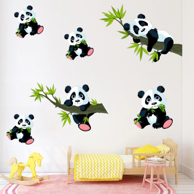 Krásná dětská samolepka na zeď, roztomilí medvídci panda, která rozzáří každý dětský pokoj. Její krásný design potěší každé dítě. Vyrobeno z kvalitního a nezávadného PVC materiálu, vhodné na všechny povrchy. Aplikace je velmi jednoduchá.