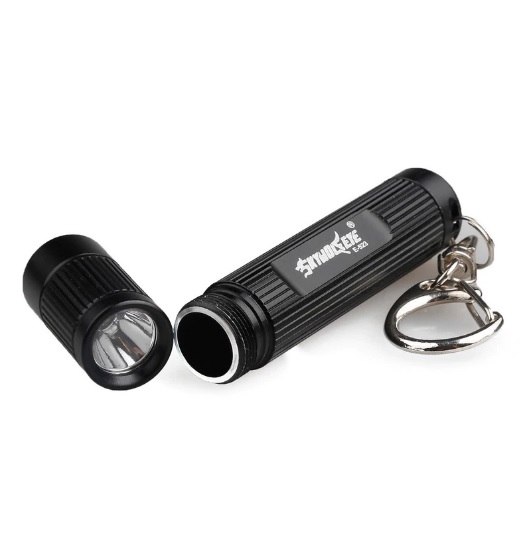 - Obsah balení: svítílna, 1ks AAA baterie, kroužek s karabinou na připevnění