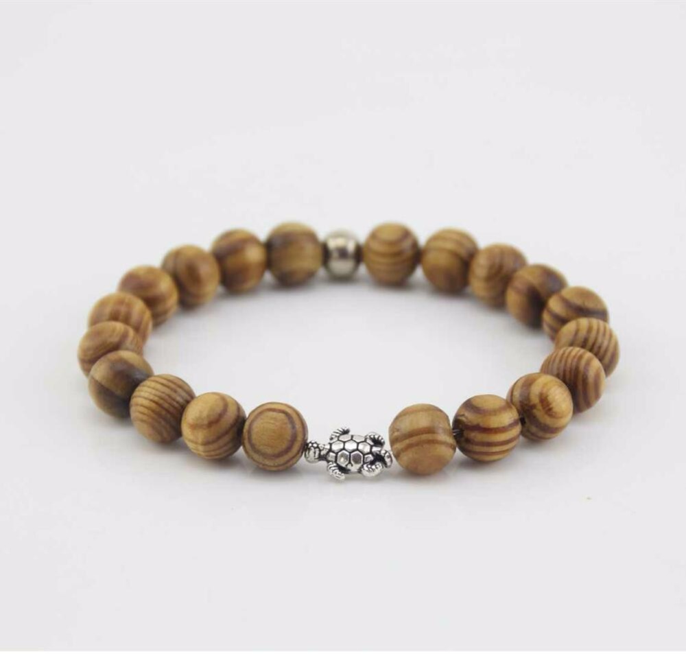 Tyto krásné náramky pomáhají k vyčištění a odblokování negativní energie a přitahují pozitivní karmu, což znamená, že napomáhají najít duševní rovnováhu, klid a k tomu tvoří originální stylový módní doplněk. Korálky jsou vyrobeny z akátového dřeva. Akátové dřevo se používá na modlitební korálky v Tibetu, Číně, Japonsku apod. Korálky hezky ozdobí Vaše zápěstí a jistě potěší i jako dárek. Symbolika: želva je prastarým symbolem dlouhověkosti, vytrvalosti, trpělivosti a životní moudrosti.