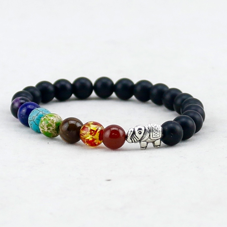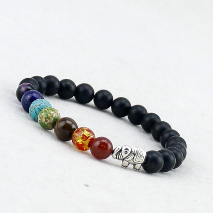 Náramek z kvalitních přírodních materiálů, tentokrát z černých lávových a barevných kamenů ozdoben symbolem slona. Slon je jedním z nejstarších zvířecích symbolů v Číně. Symbol moudrosti, velkých znalostí, síly, moci, štěstí a dlouhověkosti. Náramek Vám přinese pozitivní energii do života. Tento náramek je velmi oblíbený díky kombinaci černých a barevných korálků.