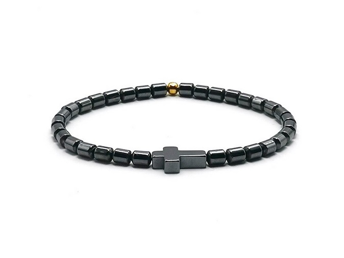 Originální, ručně vyrobený náramek z přírodního materiálu – železná ruda, doplněný křížkem. Tento stylový decentní náramek se hodí pro všechny příložitosti a stane se Vašim oblíbeným doplňkem. Železný kámen připomíná železo, je lesklý, pevný a nárámky vyrobeny z tohoto materiálu vypadají skvěle. Jedná se o ochranný kámen používaný od nepaměti na amulety. Korálky jsou navlečeny na velmi pevné a odolné gumičce.
