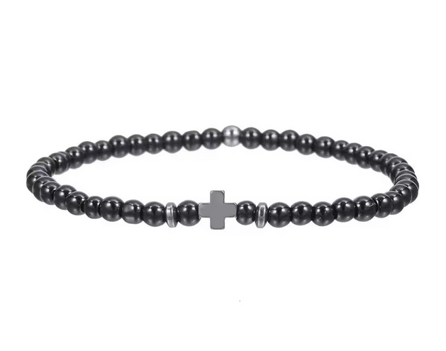 Originální, ručně vyrobený náramek z přírodního materiálu, doplněný křížkem. Tento stylový decentní náramek se hodí pro všechny příložitosti a stane se Vašim oblíbeným doplňkem. Železný kámen připomíná železo, je lesklý, pevný a nárámky vyrobeny z tohoto materiálu vypadají skvěle. Korálky jsou navlečeny na velmi pevné a odolné gumičce.