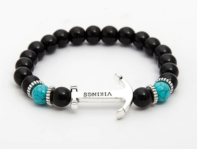 Náramek z leštěného lávového kamene, doplněný kotvou Vikings. Tento doplněk symbolizuje mořeplavce a velečníký jako byli vikingové. Náramek se stane Vašim oblíbeným módním doplňkem. Tento náramek značí nejen sílu, ale i odvahu, vytrvalost a srdce válečníka. Korálky jsou navlečeny na pevné, velmi odolné pryžové gumce.
