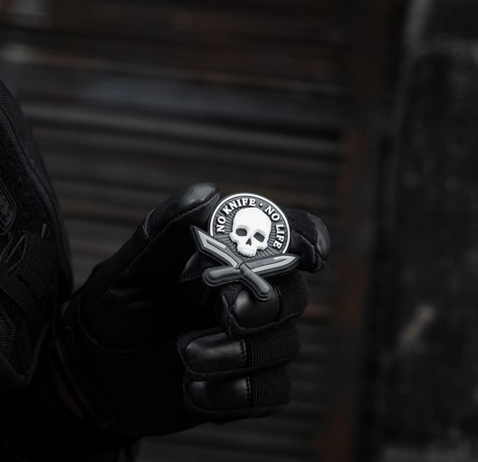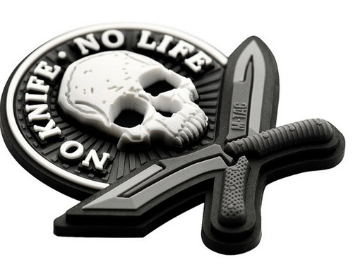 Super gumová nášivka: No knife no life/bez nože není život. Tato cool nášivka všem sdělí, že bez nože nedáte ani ránu :). Nášivka je určena pro milovníky nožů, tak i pro tvrďáky co milují chladné zbraně. Tuto našivku lze přichytit na cokoliv, batoh, tašku, mikinu, svetr, kšiltovku apod. Nášivka je včetně suchého zipu, takže stačí přichytit na molle vazbu či suchý zip.