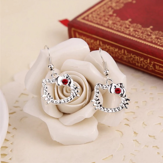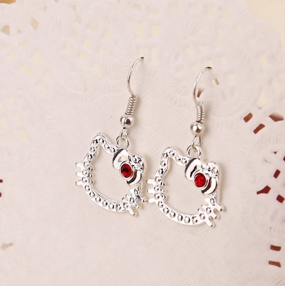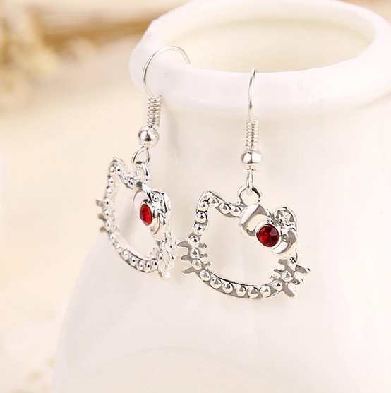Krásné postříbřené naušnice Hello Kitty vykládané zirkony. Naušnice jsou vyrobeny z kvalitního materiálu ve tvaru populární hlavičky Hello Kitty. Velmi hezké a decentní.
