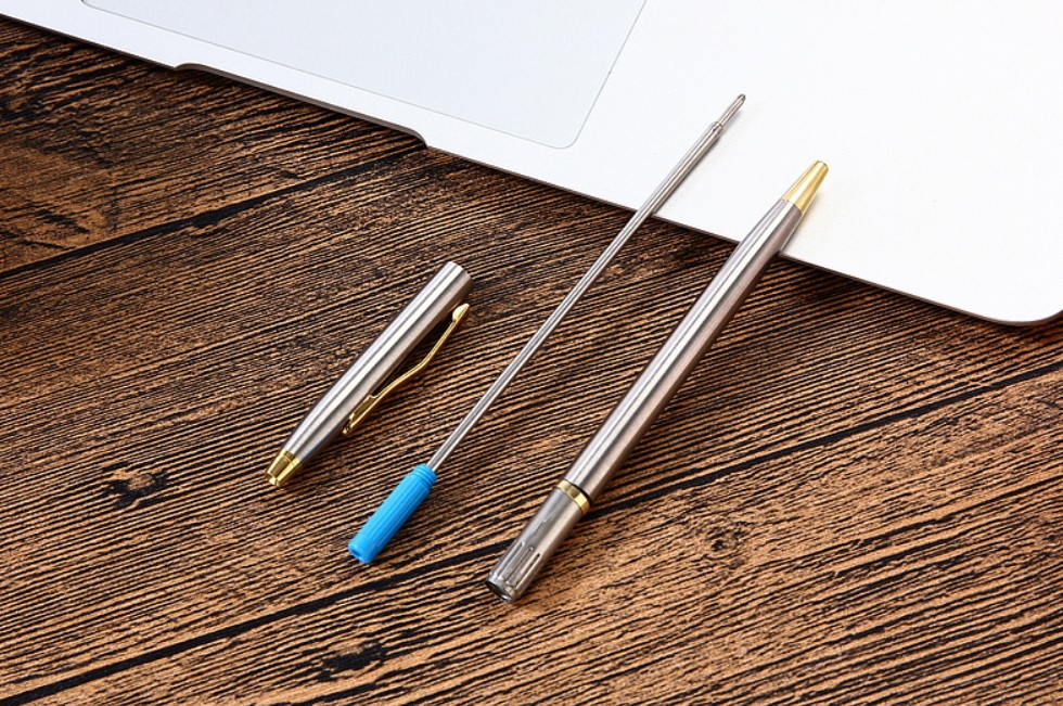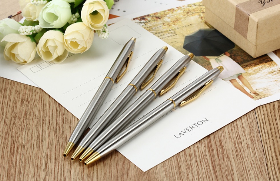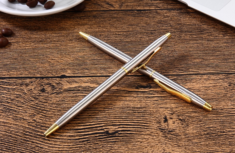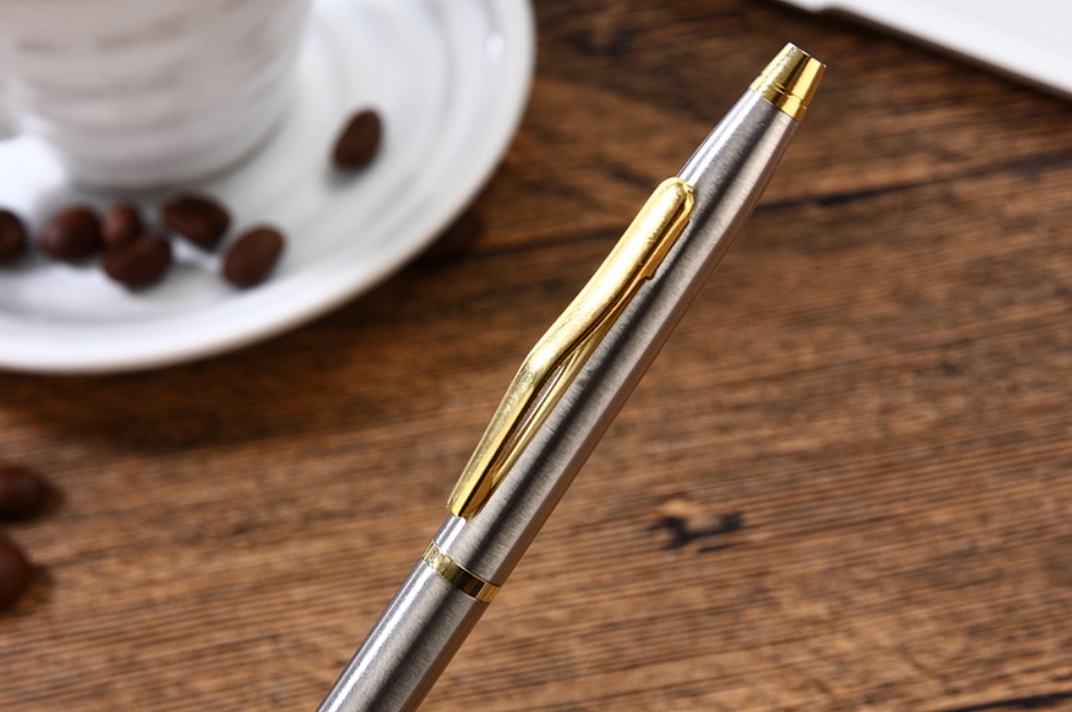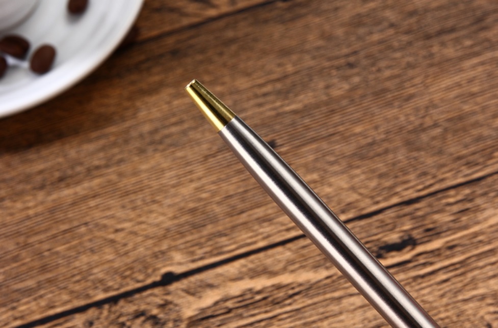 Velmi hezké nerezové kuličkové pero, které vždy stojí za to mít u sebe. Nerezové pero má točivý otevírací mechanismus a je vyrobeno z broušené nerezové oceli, doplněno zlatými prvky z mosazi. Pomocí klipsu jej lze připnout na kapsu, deníček, papíry apod. Pero teméř nic neváží, perfektně padne do ruky a je velmi pohodlné a praktické. Velmi hezký dárek.