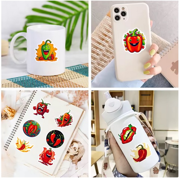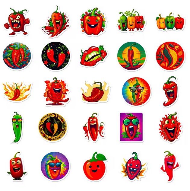 Super samolepky pro všechny příznivce palivého jídla a hlavně chilli papriček. Máte někoho známeho kdo miluje chilli a jejich ostrou chuť, tak právě pro něj jsou tyto samolepky jako stvořené. Prostě cokoliv polepíš, rozhodně vylepšíš. Notebook, telefon, počítač, helmu, poličku, brusle apod.