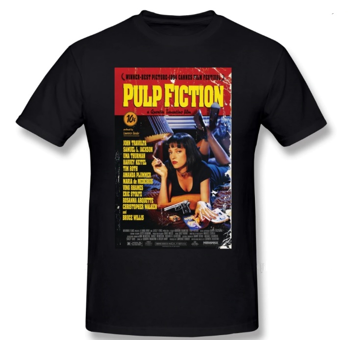 Pánské stylové tričko Pulp fiction, kdo by neznal tento kultovní film od geniálního režísera Quentina Tarantina. Pro Všechny milovníky tohoto filmového skovstu. Nyní může být toto tričko z limitované edice Vaše. Další skvělý kousek do Vašeho šatníku. Tričko má velmi kvalitní a stylový potisk, velmi dobře padne a je vyrobené ze 100% bavlny. S tímto tričkem budete vypadat skvěle. Je to proste Pulp fiction :)