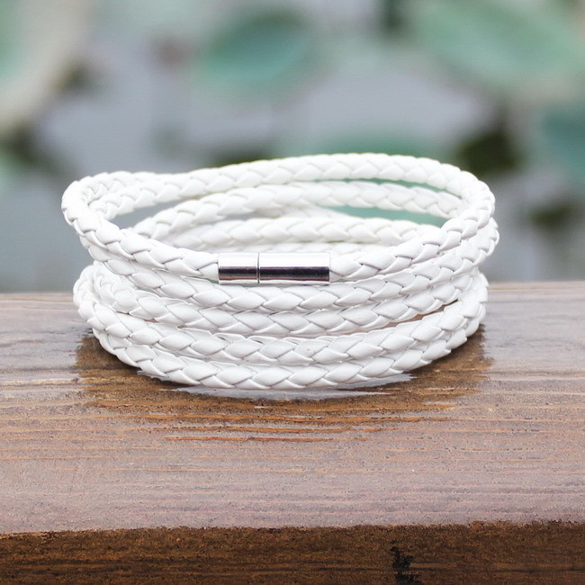 Pánský kožený náramek na ruku - bílý