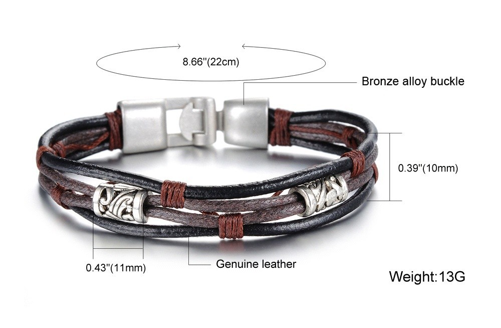 Originální kožený náramek na ruku. Naprostá většina z nich je vyrobena z pravé kůže, popřípadě v kombinaci s kovovými prvky. Náramky vybírejte pečlivě dle jejich délky a šířky Vašeho zápěstí. Pánský kožený náramek je vyrobený ze 100% kůže, zdobený kovovými doplňky. Kožené náramky jsou především módní záležitostí, skvěle doplňují Váš celkový outfit a zvýrazní Vaše zápěstí. Díky široké nabídce je lze často střídat v závislosti na zvoleném oblečení.