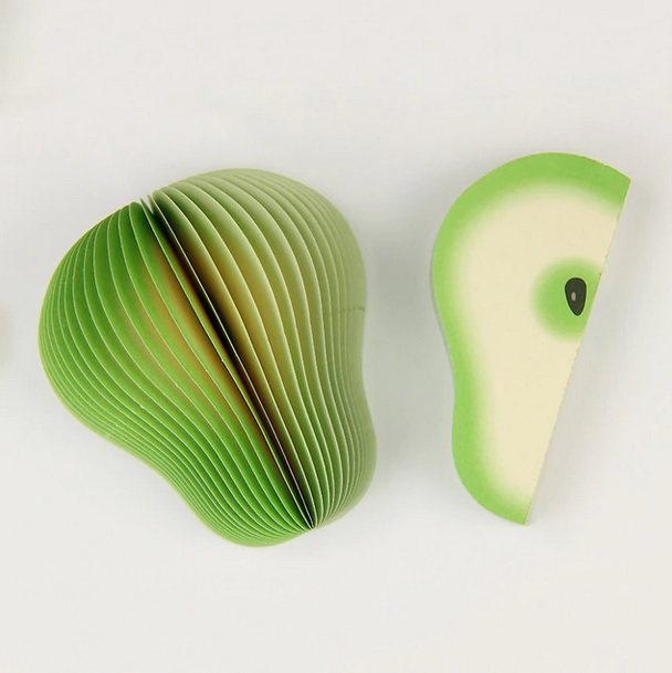 Hezký poznámkový blok v netradičním provedení ve tvaru hrušky. Blok obsahuje 138 ks stránek a bude ozdobou Vašeho psacího stolu či kuchyně, kde jej můžete využít třeba k poznámkám co nakoupit.