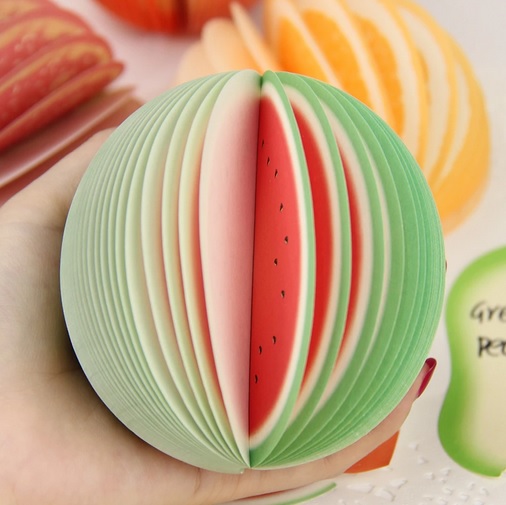 Hezký poznámkový blok v netradičním provedení ve tvaru melounu. Blok obsahuje 138 ks stránek a bude ozdobou Vašeho psacího stolu či kuchyně, kde jej můžete využít třeba k poznámkám co nakoupit.