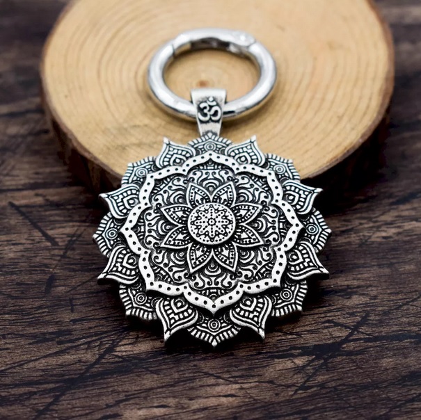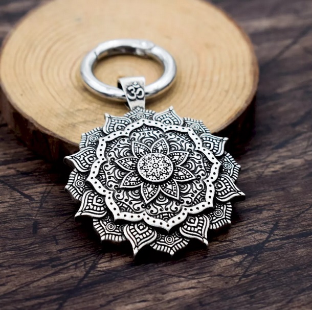 Krásný přívěsek na klíče lotosový květ se znakem óm. Přívěsek se stane nedílnou součástí Vašich klíčů, kabelky, batohu atd. Dokonale zpracovaný přívěsek, který jednoduše připnete pomocí karabinky.