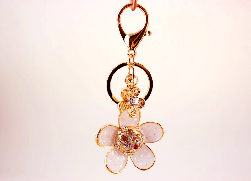 Stylové, krásné, okouzlující, to jsou nové přívěsky na klíče, které jsou ručně vykládané leštěným křištálovým sklem. Tento přívěsek potěší každého kdo má rád kytičky. Jedná se o krásný doplněk k batohu, klíčím, kabelce, peněžence apod. Tyto populární přívěsky si získali oblibu po celém světě a nyní je můžeme nabídnout i Vám. Potěší opravdu každého. Přívěsky jsou vysoké kvality, kamínky jsou zasazeny ručně a každého okouzlí jejich lesk a třpyt.