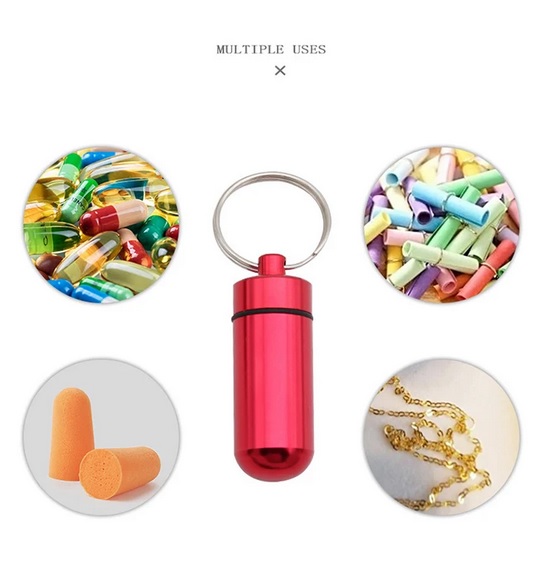 Přívěsek na klíče, ale nejenom na klíče. Voděodolná šroubovací kapsle nejen na léky, ale i na drobné předměty. Pro všechny, kteří chtějí mít své drobnosti vždy při sobě. Tento přívěsek se stane velmi užitečným doplňkem Vašich klíčů. Samozřejmostí je sofistikovaný kroužek, který připnete ke klíčím, batohu, apod.