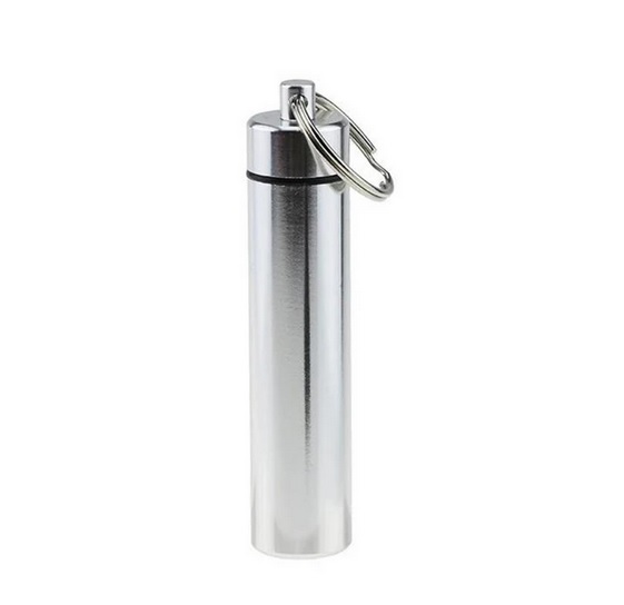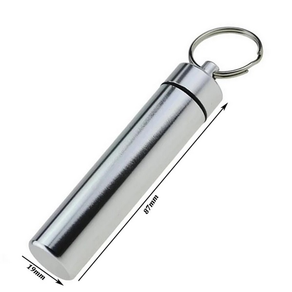 Odolná hliníková kapsle. Voděodolná šroubovací kapsle nejen na léky, ale díky své výšce hlavně na párátka či vytírátka pro všechny, kteří chtějí mít své drobnosti vždy při sobě. Tento přívěsek se stane velmi užitečným doplňkem nejen Vašich klíčů. Samozřejmostí je kroužek, kterým kaplsi připnete ke klíčím, batohu, apod.