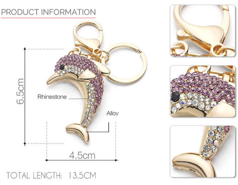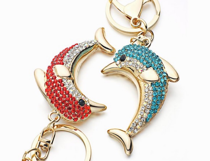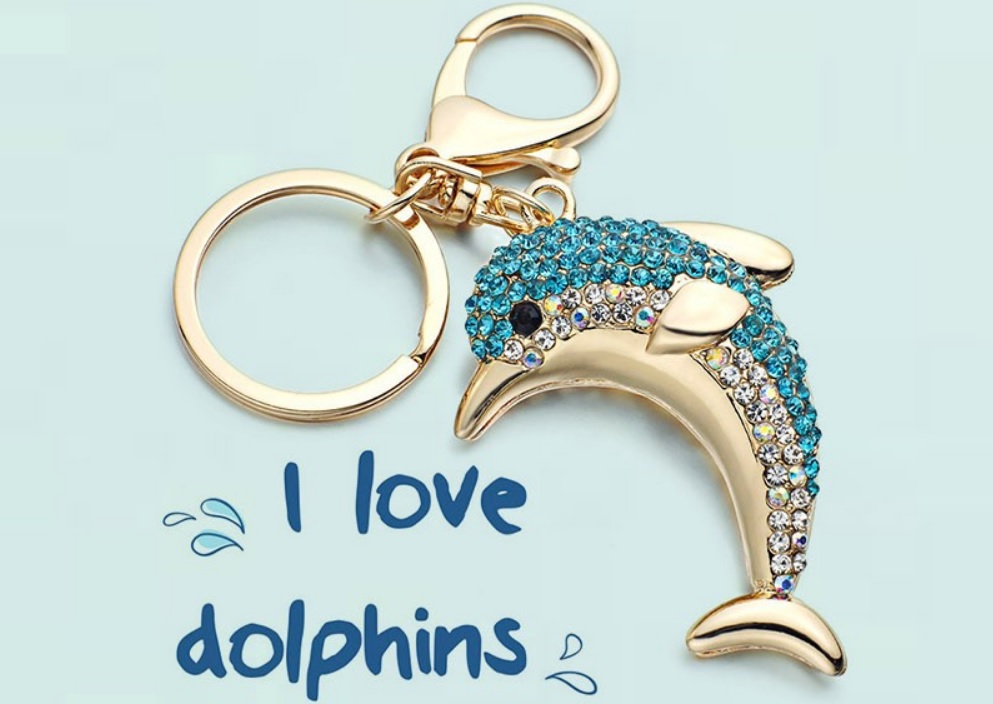 Stylové, krásné, okouzlující, to jsou nové přívěsky na klíče, které jsou ručně vykládané leštěným křištálovým sklem. Tento přívěsek potěší každého milovníka delfínků. Jedná se o krásný doplněk k batohu, klíčím, kabelce, peněžence apod. Tyto populární přívěsky si získali oblibu po celém světě a nyní je můžeme nabídnout i Vám. Potěší opravdu. Přívěsky jsou vysoké kvality, kamínky jsou zasazeny ručně a každého okouzlí jejich lesk a třpyt.